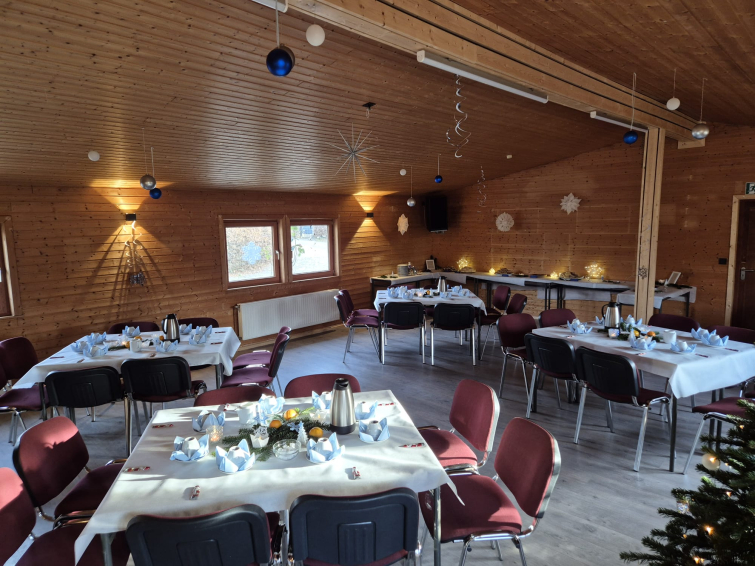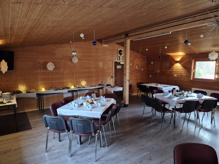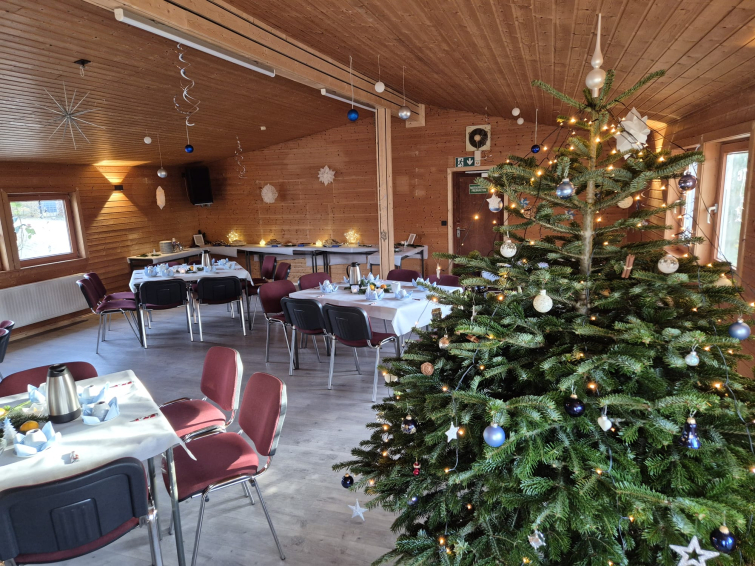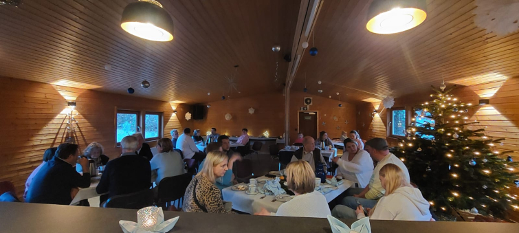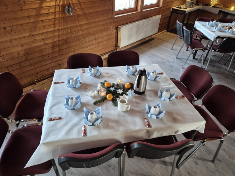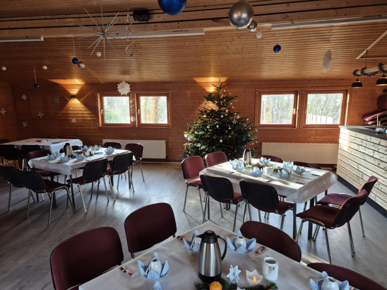 Unser Vereinshaus wurde in winterlicher und weihnachtlicher Atmosphäre eingehüllt. Überall zum Thema zugehörige Dekoration, Tannenäste auf dem Tisch, bei gemütlichem Kerzenschein. Beleuchte Sterne und Schneeflocken aus schaumigen Papier. Die echte 2 Meter hohe Tanne darf natürlich auch nicht fehlen und ist der I Punkt im Dekorationskonzept. Unser Festausschuss hat mal wieder alle Register gezogen. Das Konzept von unserem Winterkaffee ist, dass jeder Gast eine Kleinigkeit zu der Veranstaltung mitbringt, woran sich jeder bedienen darf und das kam super an. Jeder hat selbst gebackene Köstlichkeiten mitgebracht. Es war ein gelungener Nachmittag. So schön kann das Vereinsleben sein.