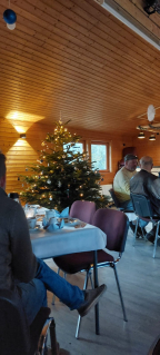 Unser Vereinshaus wurde in winterlicher und weihnachtlicher Atmosphäre eingehüllt. Überall zum Thema zugehörige Dekoration, Tannenäste auf dem Tisch, bei gemütlichem Kerzenschein. Beleuchte Sterne und Schneeflocken aus schaumigen Papier. Die echte 2 Meter hohe Tanne darf natürlich auch nicht fehlen und ist der I Punkt im Dekorationskonzept. Unser Festausschuss hat mal wieder alle Register gezogen. Das Konzept von unserem Winterkaffee ist, dass jeder Gast eine Kleinigkeit zu der Veranstaltung mitbringt, woran sich jeder bedienen darf und das kam super an. Jeder hat selbst gebackene Köstlichkeiten mitgebracht. Es war ein gelungener Nachmittag. So schön kann das Vereinsleben sein.